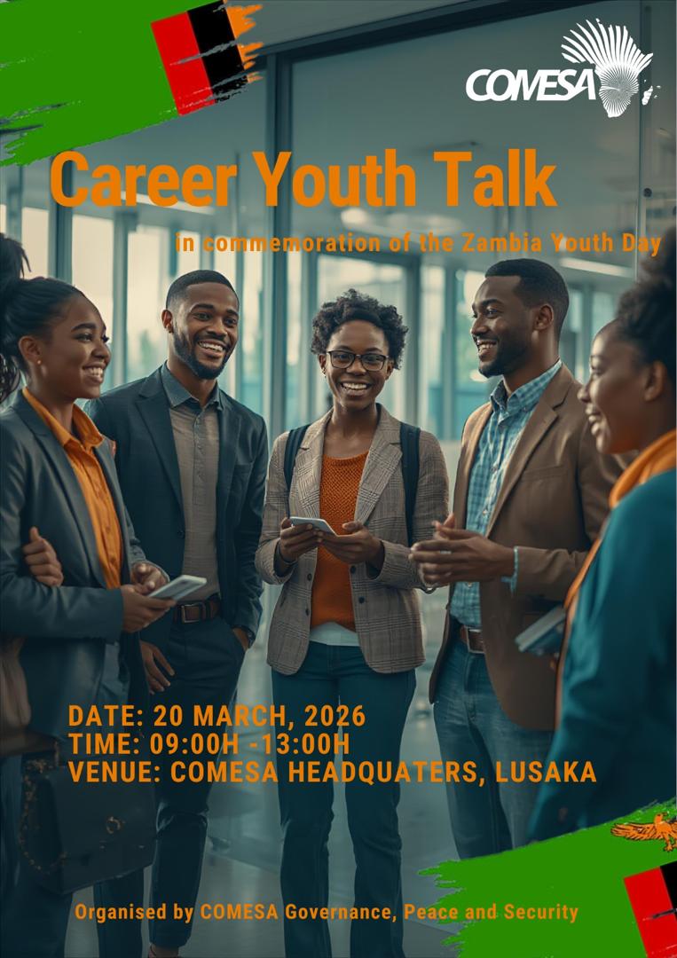 Are you a young Zambian passionate about building a meaningful career and contributing to regional integration, peace and development? The COMESA Governance, Peace and Security (GPS) is hosting a Career Youth Talk in commemoration of the Zambia Youth Day at the COMESA Headquarters in Lusaka. This interactive session will give young people the opportunity to:…