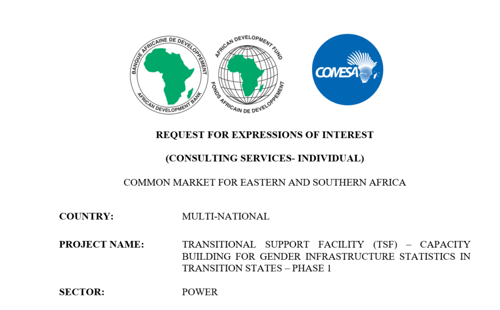 The COMESA Secretariat has received a grant from the African Development Fund (ADF) towards the financing of the Capacity Building for Gender Sensitive Infrastructure Statistics in Transition States – Phase 1. The COMESA intends to apply part of the proceeds of the grant to procure Individual Consultancy services for an International Energy Statistics Expert to supervise the data collection, validation and analysis of energy statistics in participating countries.